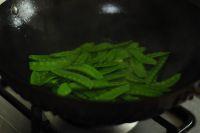 8.下葱姜蒜煸出香味,再放入荷兰豆煸炒。