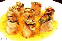 摆盘创意灵感来源于西餐,做法来源于《红楼梦》里王熙凤接待刘姥姥那段的一道菜,叫:茄鲞。其实是误解而来,茄鲞是切丁的,而我们今天这道菜是卷的手法。尽管是误解而来,但是也挺有意思,并且茄子大都做法比较单一,或者说做出来形状都不是很好看,今天这道用茄子做的菜就完全不同,口感清爽,夏季更适宜,而且很时尚并且健康