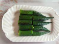 2.秋葵放入沸水中焯熟后,捞出冷却,
