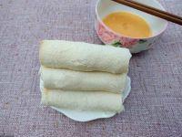 6.裹成春卷的样子,最后粘上蛋液封口。