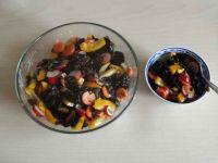 3.将木耳和蔬菜混合,根据个人口味,加入适量橄榄油,盐和 Balsamico 香醋,搅拌均匀。这里最好是用 Balsamico香醋,因为它是葡萄醋,口感和香味都与米醋有很大差别,也因为它是我的最爱哈哈??~