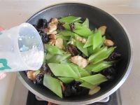 5. 鸡片翻炒变色后加入黑木耳进去翻炒;