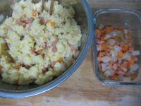 10.将土豆泥拌匀(旁边留下的炒好食材将用到南瓜浓汤中)