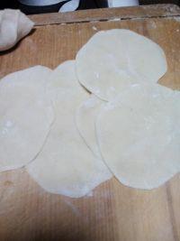 1.面粉加入水用筷子搅成絮状,揉成面团醒一会。猪肉切丁加点酱油腌一会。