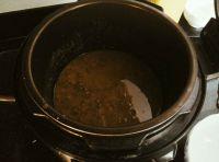 2.放入高压锅,加清水,冰糖,按煮豆键,煮1小时,开锅,已经煮得很烂了