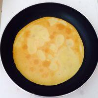 7.平底锅预热一下,面糊均匀的倒满锅底。用小火慢煎。