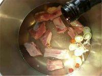 2.2.排骨洗净放入高压锅中,加入清水,加料酒、一部分的葱块、姜片和山楂片,中火压制15分钟。