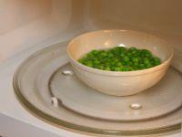 2.豌豆粒加少量的盐用微波炉煮熟。如用微波炉高火约1.5分钟。