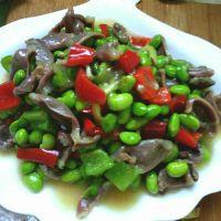 9.至毛豆煮熟,加味精,青红椒炒匀即丁