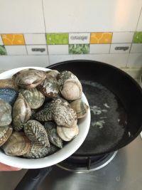 3.再将洗好的花蛤下锅。