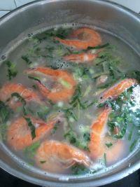 1.将鲜虾去掉虾线,虾须,备用,姜切丝,菠菜切细条备用