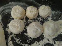 8.在两面掐的头蘸些面粉,避免沾手,然后按成圆饼